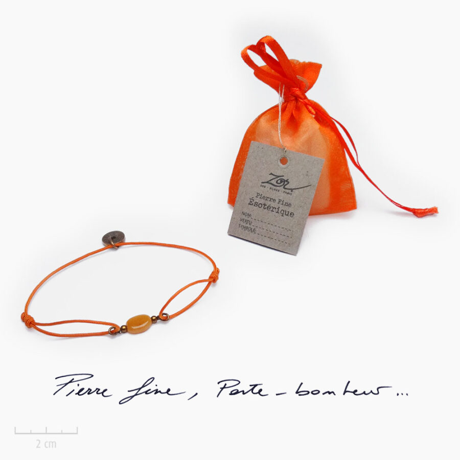 Attention, la couleur a aussi son langage… Alors choisissez la couleur de lien qui vous correspond! L’agate hyacinthe revêt des nuances plus ou moins vives. Cette pierre semi-précieuse a des reflets de miel, doux et chaleureux et des marbrures ou contrastes plus orangés, vibrants et intenses. Mais chaque version de ce bracelet porte en elle une âme et une énergie unique. Ces variations procurent à chacun le sentiment de porter au poignet un petit bout de notre précieuse planète Terre. Mais vous pouvez aussi vous approprier encore plus cette gemme en la customisant. Chez Zor amusez-vous à mettre en valeur votre pierre fine de manière très personnelle. Pour ceci explorez notre collection d’options sur-mesure.