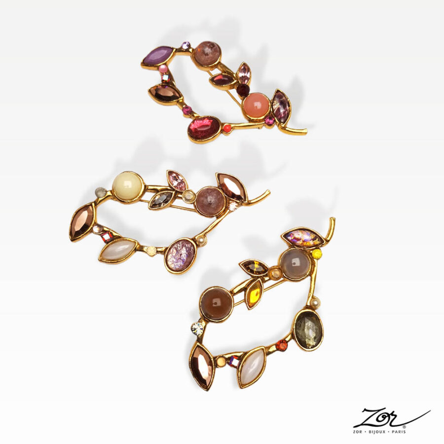 Les créations Zor ont conçu 5 broches temporelles pour symboliser les quatre saisons et plus… Du vert éclatant du printemps au fuchsia vibrant de l’hiver, en passant par les teintes chaudes de l’automne et les tons rafraîchissants de l’été, la broche « Brin de Femme » célèbre la diversité et la beauté de la nature. Une cinquième palette intemporelle, dominée par des nuances de rose poudré, évoque l’éternelle féminité et la douceur des instants précieux. Si vous voulez voir cette broche romantique en situation, portée sur un chemisier vous serez inspirée!